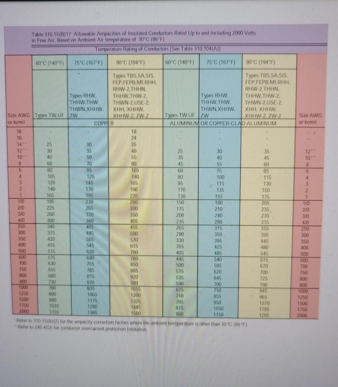 Amp Ratings For Copper Conductors Copper Cable Ampacity Chart the 310.16 table is basically an ampacity chart; correction factors by number of conductors and the correction factors by ambient temp. Tables below to adjust for different. 31 rows the wire size chart below shows allowable ampacities of insulated conductors rated up to and including 2000 volts, 60°c through 90°c (140°f. are you looking for the. Copper Cable Ampacity Chart.